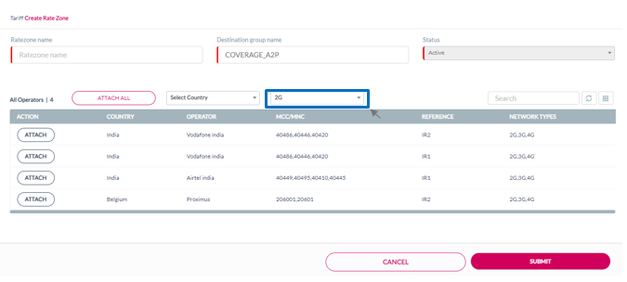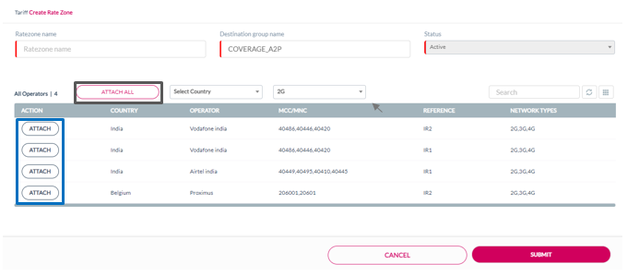 Click Attach All to attach all the listed operators to the rate zone. Refer to the following screen.