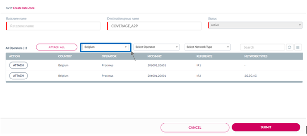 Select Operator drop-down list. For example, select Belgium Proximus to view that particular operator.