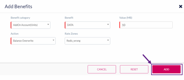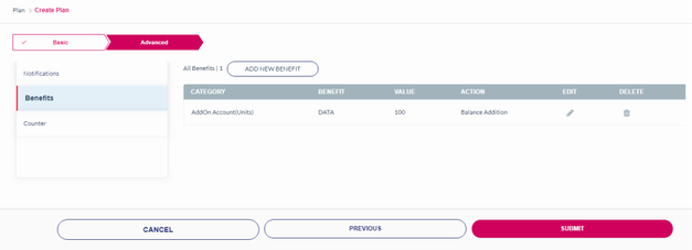 Value (MB) | Based on the Benefit selected, the corresponding value field is displayed. For example, this field is displayed when you select "Data/NB-IOT" as Benefit |
