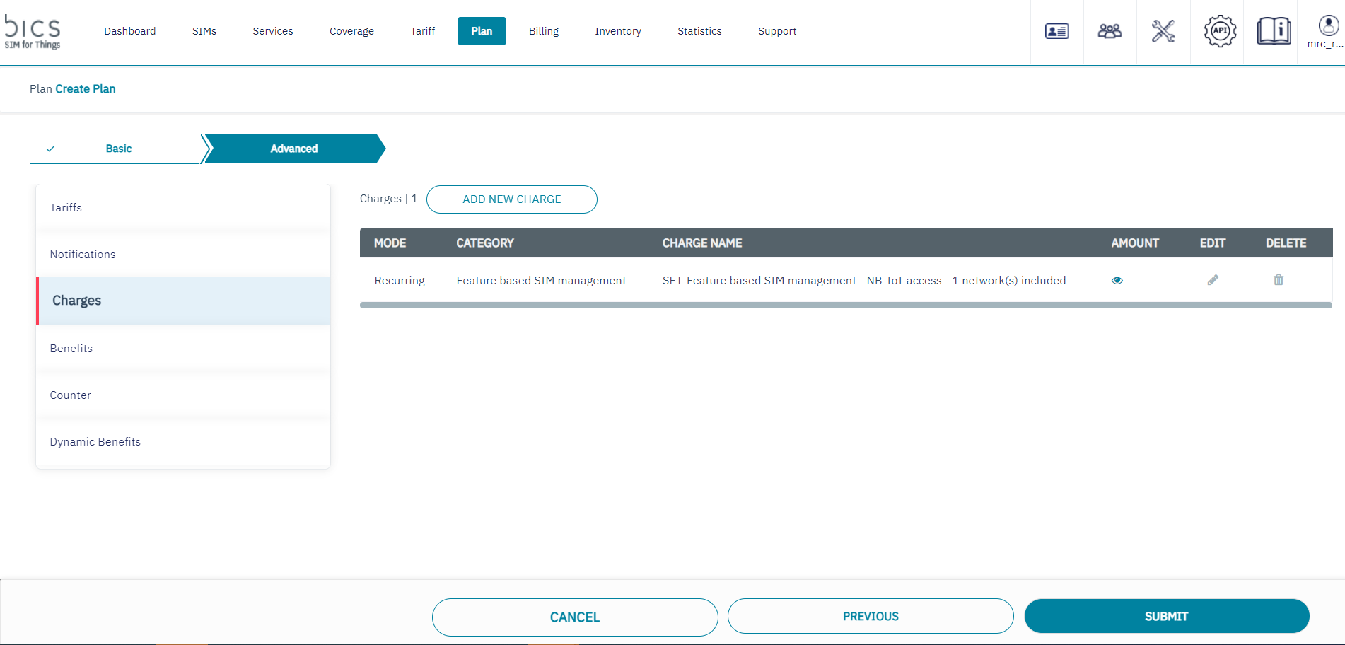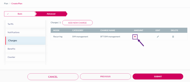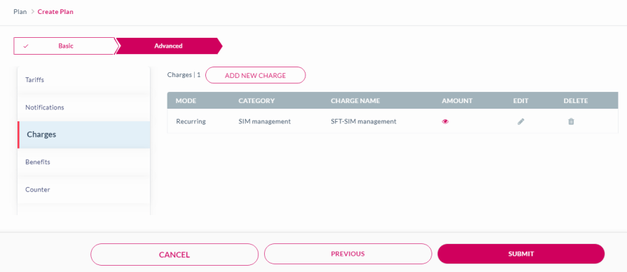 SFT - SIM Management is a Monthly recurring fee that is collected based on the SIM status. It indicates the charges for SIM management activities. This fee is part of the Charges section in a Plan.