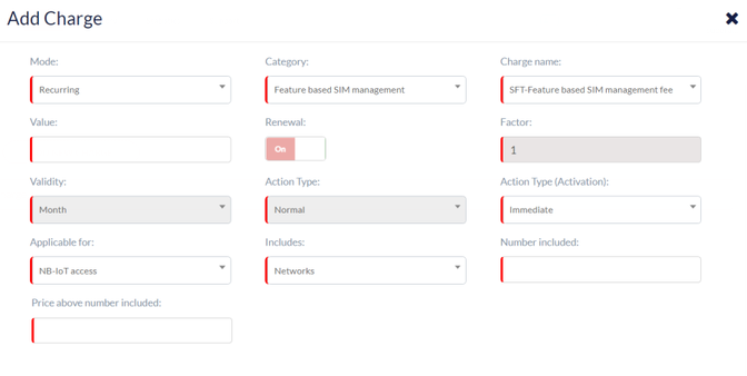 Applicable for | By default, this field is not displayed. This field is displayed when you select "SFT-Feature based SIM management fee" as Charge name.