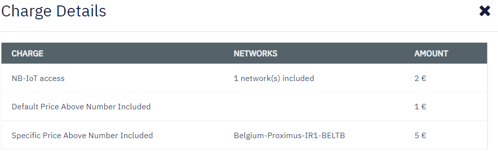 Specific price per network | By default, this field is not displayed. This field is displayed when you select "NB-IoT access or Data access" as Applicable for. contain one line per network .