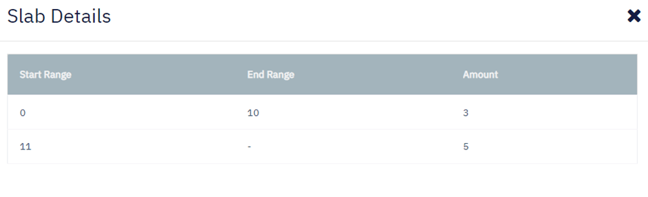 Note: The start range for slab 2 is auto-populated based on the end range of the slab 1 and cannot be modified.