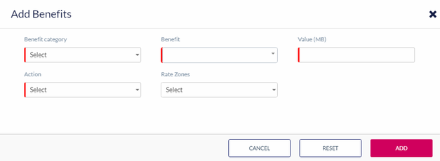 Value (MB) | Based on the Benefit selected, the corresponding value field is displayed. For example, this field is displayed when you select "Data"/”NB-IOT” as Benefit |
