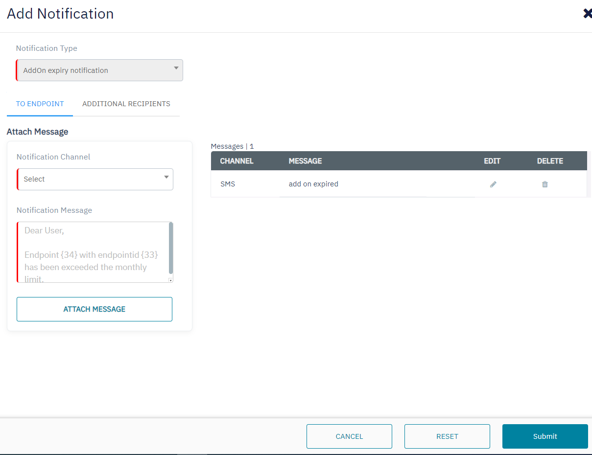 12. Click Submit to attach the Notification to the rate plan. The following screen is displayed.