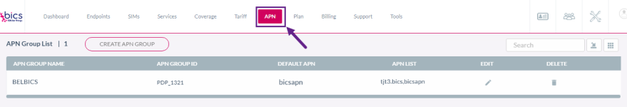 On the top menu, click APN to view the APN group details. Refer to the following screen.