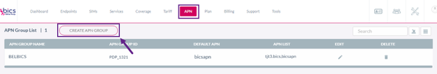 3. After clicking the button, the Create APN Group screen is displayed.