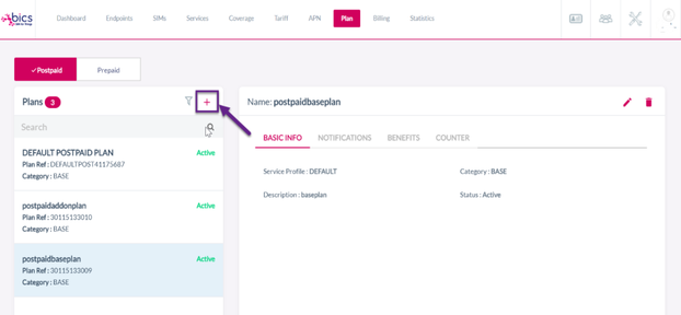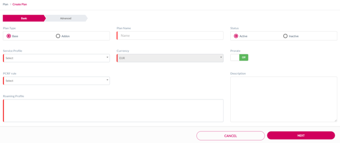 To create a base plan for prepaid connection, click Prepaid tab and follow the subsequent steps