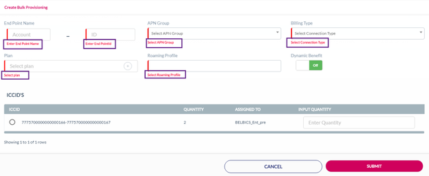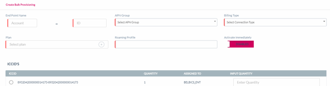 ICCID's | Select the ICCIDs based on the number of endpoints to be created. |