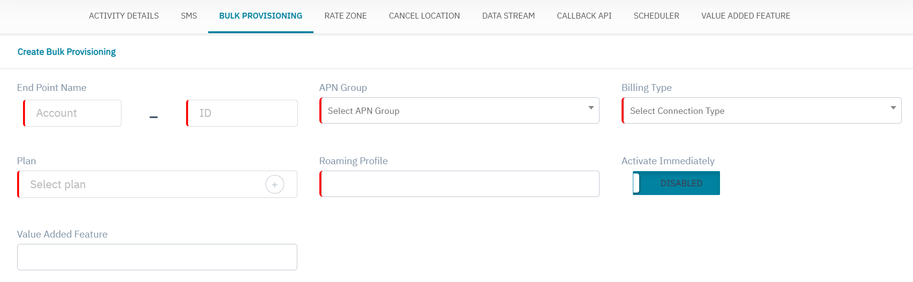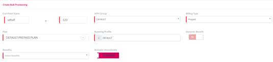 Figure 5 Create Bulk Bulk provisioning - Value added feature