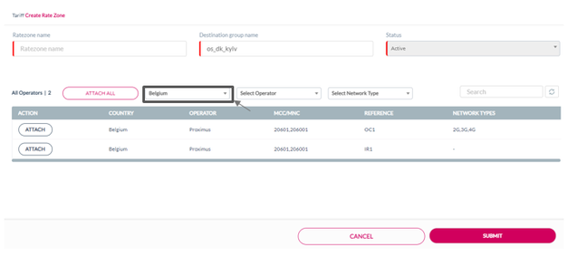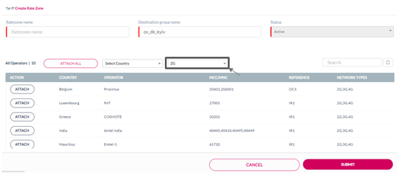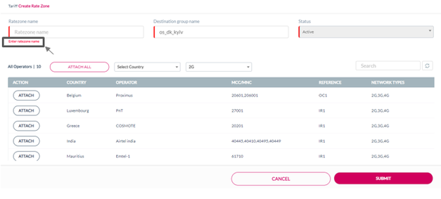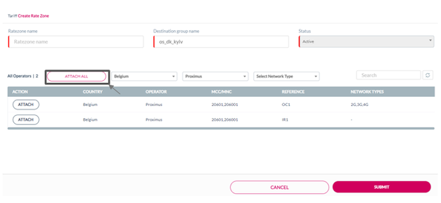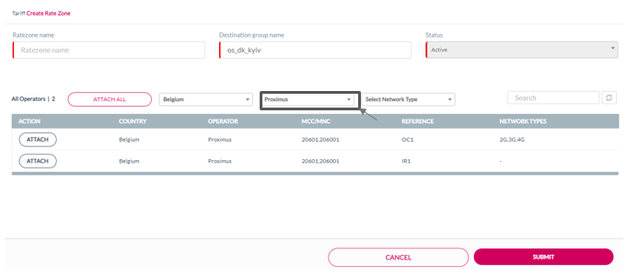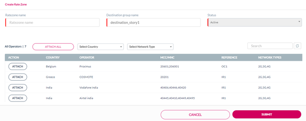 10. Click Attach displayed against an operator to attach that specific operator to the Ratezone.