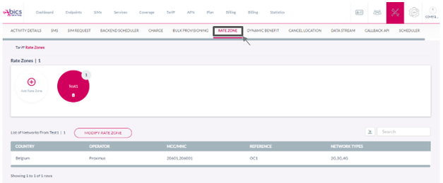 2. On the Settings screen, click Ratezone to view the Ratezone details. Refer to the following screen
