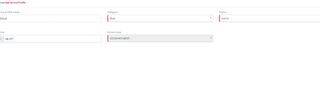 If selecting only NB-IOT service from the drop down, access type field should be disabled with NBIOT RAT type as shown below.