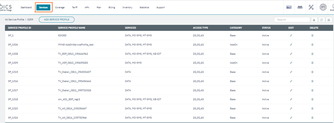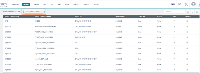 2. On the Services screen, click Add Service Profile to create a new Service profile. Refer to the following screen.