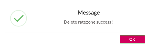 5. After clicking Yes, a confirmation message is displayed indicating the Ratezone is deleted successfully.