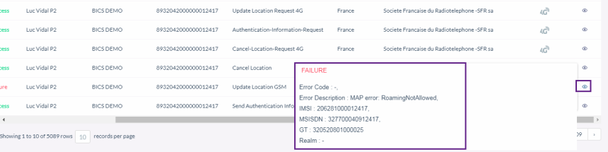 If you place the cursor over the eye icon against a successful event, the following screen is displayed. Refer to the following screen.