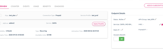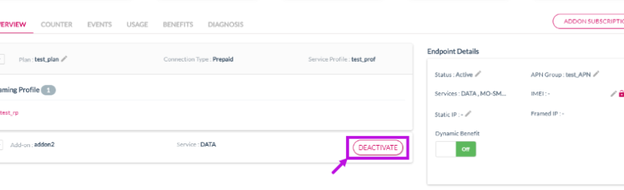 On the Endpoint screen, click Overview for deactivate Addon. Refer to the following screen.