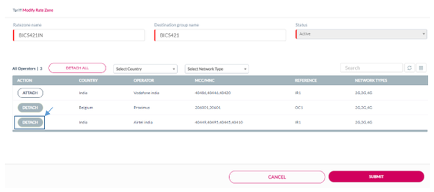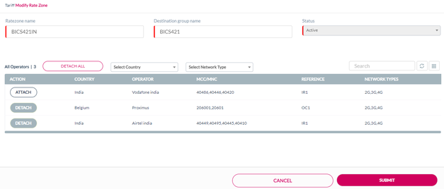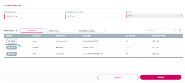 Attach displayed against an operator to attach the operator to the rate zone. Refer to the following screen.