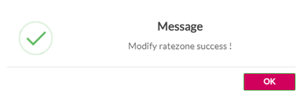 A confirmation message is displayed, indicating that the rate zone is modified successfully.