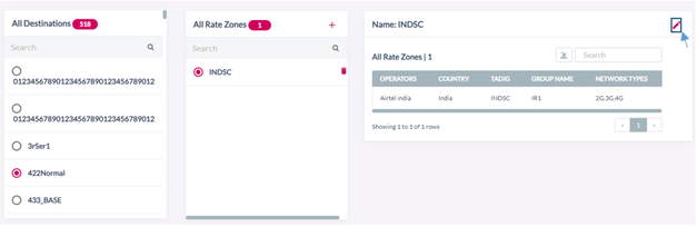 After clicking the button, the following screen is displayed. Rate zone attached to each Destination group is displayed.