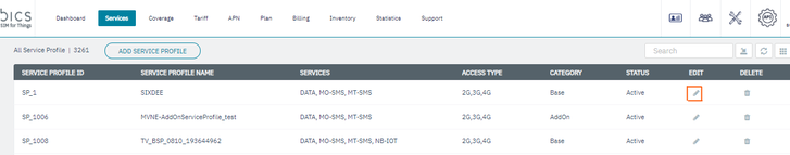 Note: You cannot modify the Category, Service, and Access type of the Service Profile.