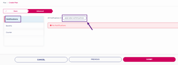 1. Add New Notification to add a Notification. Refer to the following screen.