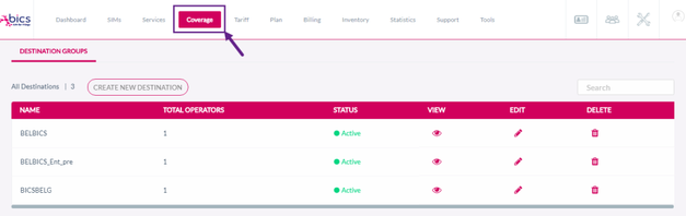 1. On the top menu, click Coverage to view the Destination group details. Refer to the following screen.