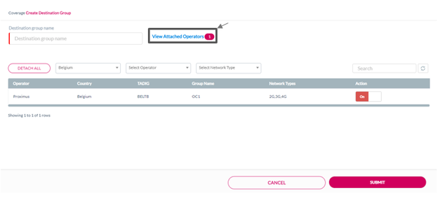 On the Create Destination Group screen, click View Attached Operators to view the operators attached to the Destination Group.