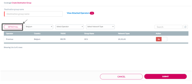 To detach all the listed operators from the Destination Group, click Detach All. Refer to the following screen.