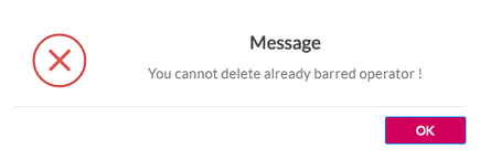 If you try to delete a barred operator, the following message is displayed
