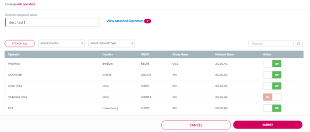 Push the action button against the operator to Attach or Detach the operator to the Destination group. Refer to the following screen.