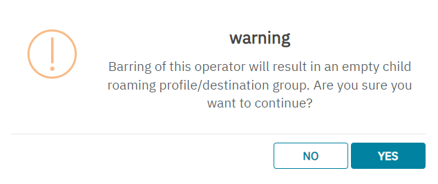 The system will allow barring of a network from the destination group that results in an empty destination group or roaming profile in the down hierarchy by providing a warning to the user and asking for confirmation before executing the change when triggered from the GUI.