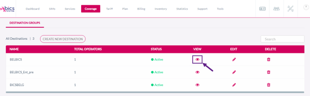 View | Click to view the operators attached to the Destination group (see below for more information). |