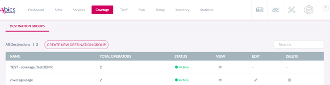 1. On the top menu, click Coverage to view the Destination Group details. Refer to the following screen.