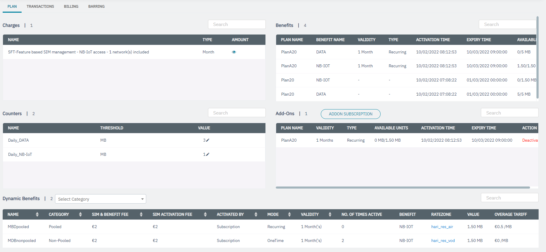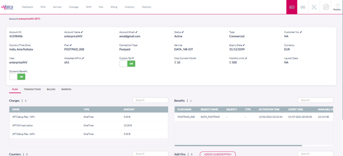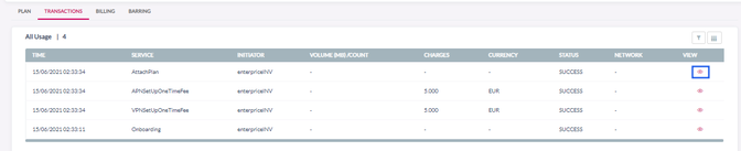 | Type | Type of charging as configured in the “Action Type” (and slab details) in the SIM management fee | |