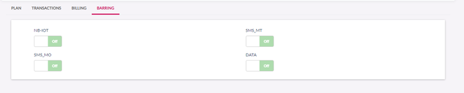 Data | Push button to Bar or Unbar the Data service for the child account |