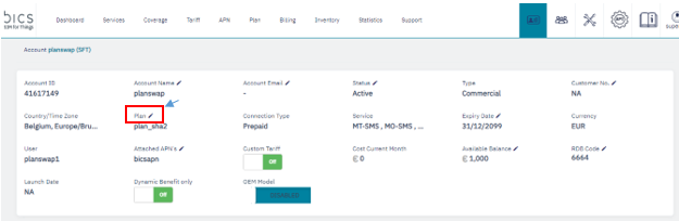 Note: Plan swap is not allowed if the current plan contains Dynamic Benefits. Note: Plan Swap is not possible for the customer if MDB is activated. Note: Plan Swap is not enabled if OEM is enabled. |