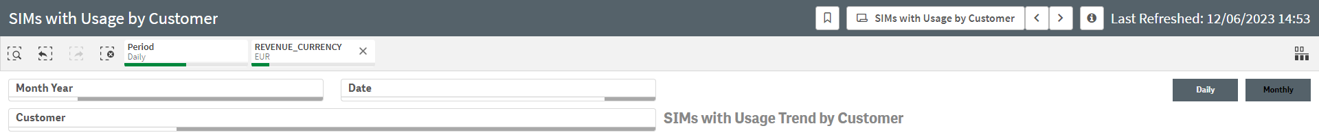 2 - Upon selecting 1 Customer, Number of SIMs with Usage on the last available/selected periods for the selected Customer