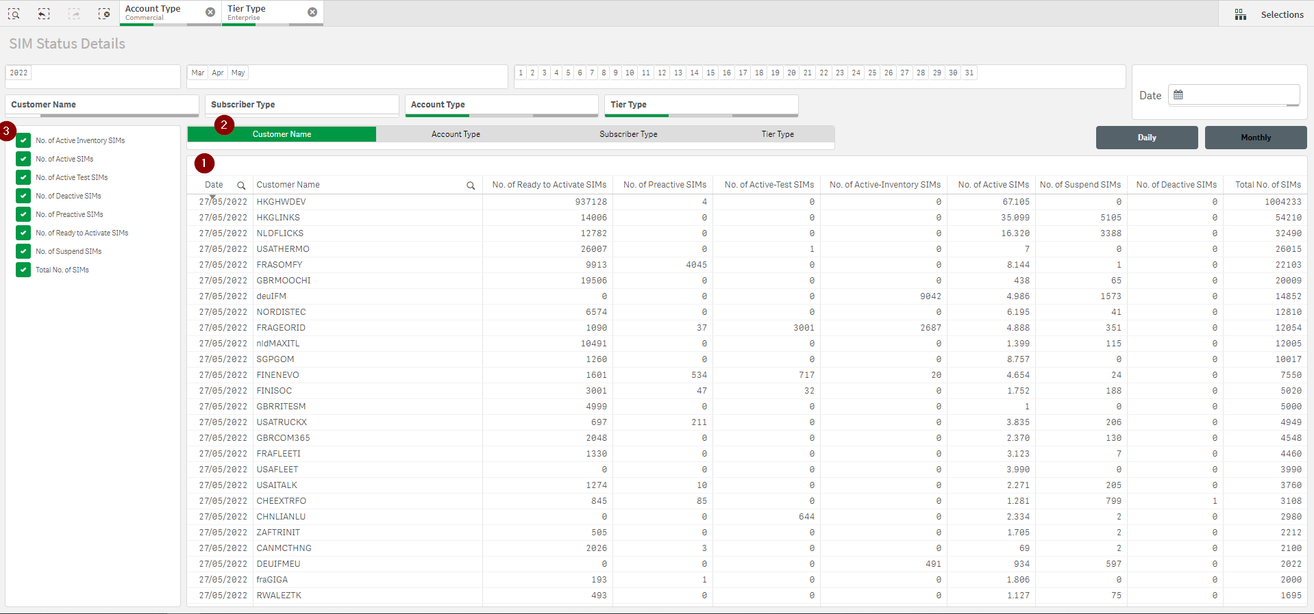 Customer Name (if only 1 Customer is select then chart 3 changes to a vertical bar - example below)