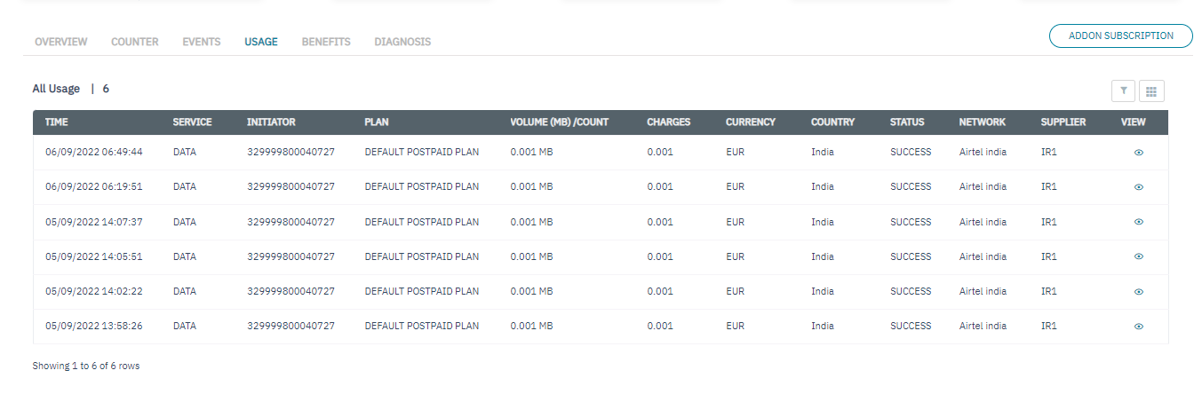 On the Usage screen, click the eye icon to view the quick description of the Transaction. Refer to the following screen.
