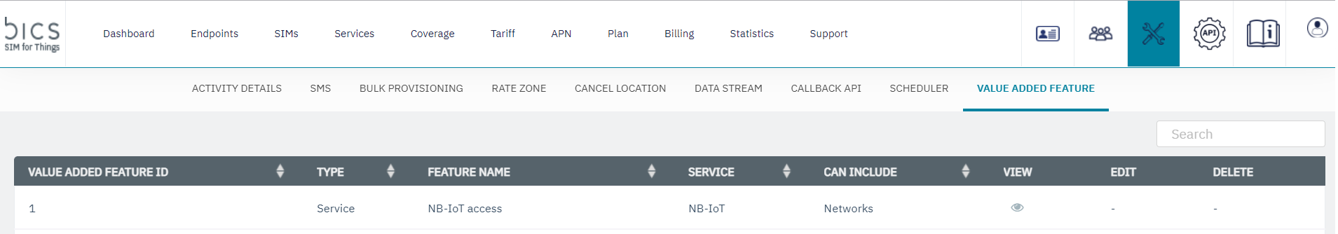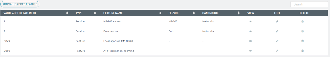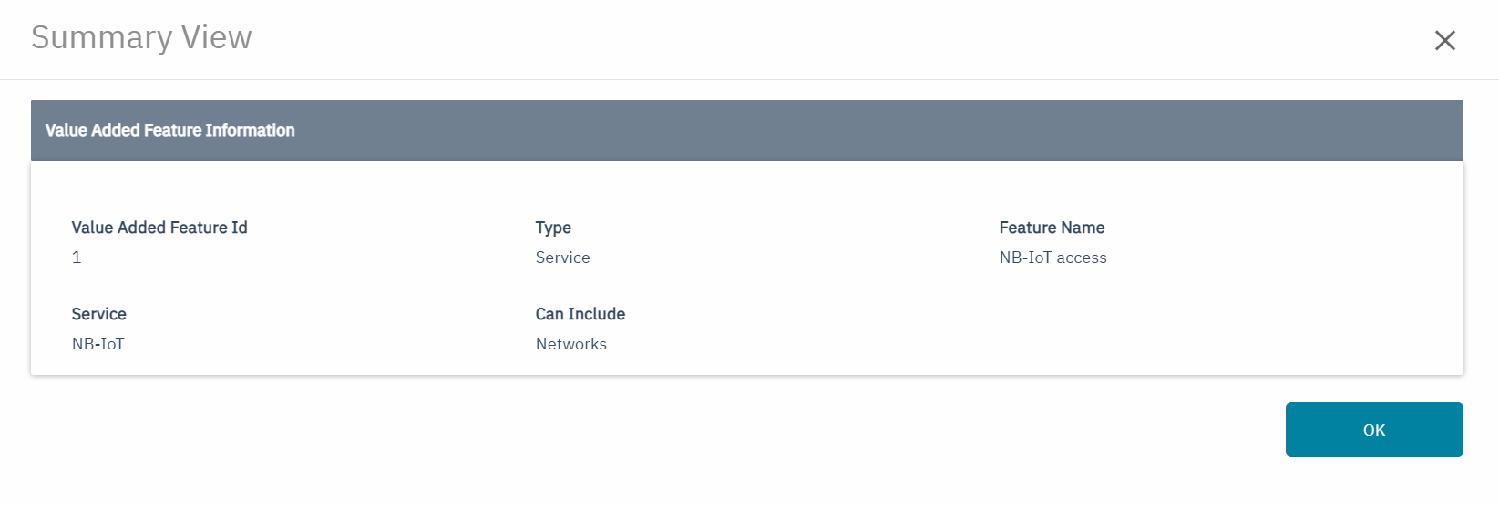 View | On click of view icon, the summary view of the value added feature details will be shown |