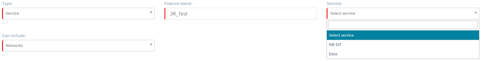 Customer has created a value-added feature called “JR_Test” for NB-IoT service