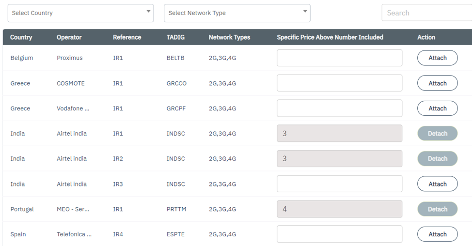 Service(NB IoT/Data) must be selected as SIM management fee will be charged based on Data or NB-IoT usage. Networks must always be selected.