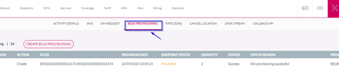 SIM Provision ID | Indicates the unique reference ID given for each bulk provision request |
